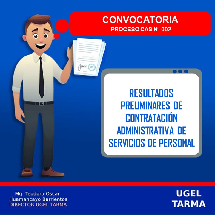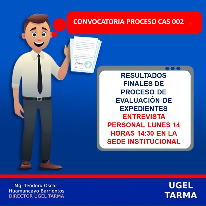 UGEL – TARMA Inicio Nosotros Historia Misión, Visión Directorio Telefónico Documento de Gestión Contacto Convocatorias Contratación CAS Contrato Docente 2022 Contrato de Auxiliares 2022 Reasignación Docente y Auxiliares Documentos de Gestión Directivas Oficios Comunicados Servicios Mesa de Partes Virtual (SISDORE) Consulta el estado de tu expediente Descargar FUT Libro de Reclamaciones Portal de Transparencia RESULTADOS PRELIMINARES DEL PROCESO CAS Nº 002 COMENTARIOS UNIDAD DE GESTIÓN EDUCATIVA LOCAL TARMA Dirección: Psj. San Juan Bosco N° 102 Tarma Central telefónica: (064) 323082 Mesa de Partes: (064) 321718 Email: ugel2020tarma@gmail.com Facebook Twitter Youtube