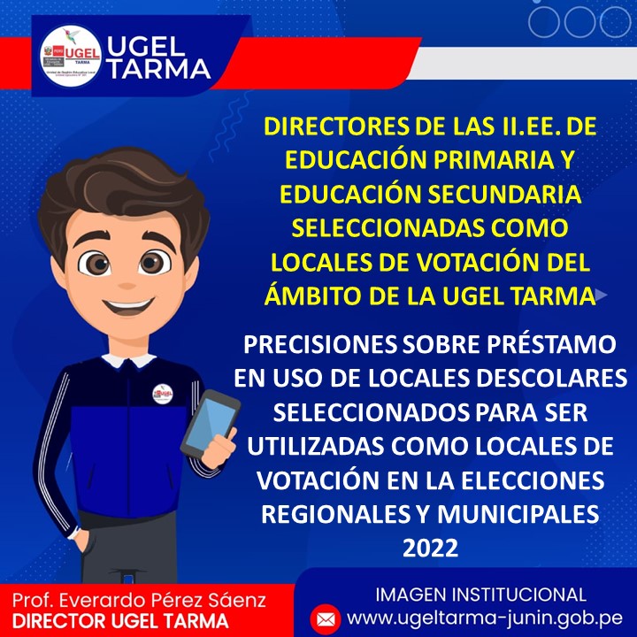 UGEL – TARMA Inicio Nosotros Historia Misión, Visión Directorio Telefónico Documento de Gestión Contacto Convocatorias Contratación CAS Contrato Docente 2022 Contrato de Auxiliares 2022 Reasignación Docente y Auxiliares Documentos de Gestión Directivas Oficios Comunicados Servicios Mesa de Partes Virtual (SISDORE) Consulta el estado de tu expediente Descargar FUT Libro de Reclamaciones Portal de Transparencia ENTREGA DE LOCALES DE VOTACIÓN PARA EL PROCESO DE LAS ELECCIONES REGIONALES Y MUNICIPALES 2022 COMENTARIOS UNIDAD DE GESTIÓN EDUCATIVA LOCAL TARMA Dirección: Psj. San Juan Bosco N° 102 Tarma Central telefónica: (064) 323082 Mesa de Partes: (064) 321718 Email: ugel2020tarma@gmail.com Facebook Twitter Youtube