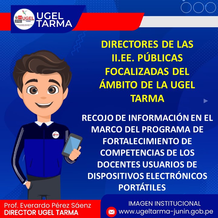 UGEL – TARMA Inicio Nosotros Historia Misión, Visión Directorio Telefónico Documento de Gestión Contacto Convocatorias Contratación CAS Contrato Docente 2022 Contrato de Auxiliares 2022 Reasignación Docente y Auxiliares Documentos de Gestión Directivas Oficios Comunicados Servicios Mesa de Partes Virtual (SISDORE) Consulta el estado de tu expediente Descargar FUT Libro de Reclamaciones Portal de Transparencia CONVOCATORIA PARA ASISTENCIA TÉCNICA SOBRE EL KIT REGIONAL PARA LA VERIFICACIÓN DE LOS APRENDIZAJES COMENTARIOS UNIDAD DE GESTIÓN EDUCATIVA LOCAL TARMA Dirección: Psj. San Juan Bosco N° 102 Tarma Central telefónica: (064) 323082 Mesa de Partes: (064) 321718 Email: ugel2020tarma@gmail.com Facebook Twitter Youtube