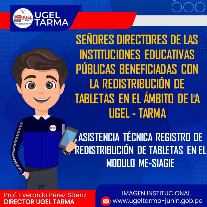 UGEL – TARMA Inicio Nosotros Historia Misión, Visión Directorio Telefónico Documento de Gestión Contacto Convocatorias Contratación CAS Contrato Docente 2022 Contrato de Auxiliares 2022 Reasignación Docente y Auxiliares Documentos de Gestión Directivas Oficios Comunicados Servicios Mesa de Partes Virtual (SISDORE) Consulta el estado de tu expediente Descargar FUT Libro de Reclamaciones Portal de Transparencia ASISTENCIA TÉCNICA REGISTRO DE REDISTRIBUCIÓN DE TABLETAS EN EL MODULO ME-SIAGIE COMENTARIOS UNIDAD DE GESTIÓN EDUCATIVA LOCAL TARMA Dirección: Psj. San Juan Bosco N° 102 Tarma Central telefónica: (064) 323082 Mesa de Partes: (064) 321718 Email: ugel2020tarma@gmail.com Facebook Twitter Youtube