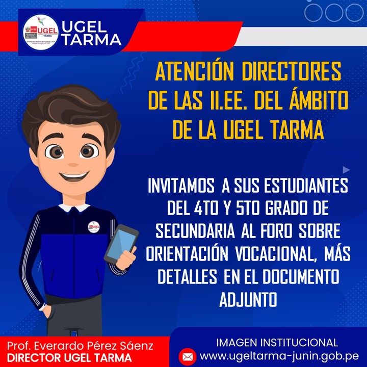 UGEL – TARMA Inicio Nosotros Historia Misión, Visión Directorio Telefónico Documento de Gestión Contacto Convocatorias Contratación CAS Contrato Docente 2022 Contrato de Auxiliares 2022 Reasignación Docente y Auxiliares Documentos de Gestión Directivas Oficios Comunicados Servicios Mesa de Partes Virtual (SISDORE) Consulta el estado de tu expediente Descargar FUT Libro de Reclamaciones Portal de Transparencia ATENCIÓN DIRECTORES DE LAS II.EE. DEL AMBITO DE LA UGEL TARMA, OFICIO DE CULMINACIÓN DE FECHA PARA LA PRESENTACIÓN DE DECLARACIÓN DE GASTOS COMENTARIOS UNIDAD DE GESTIÓN EDUCATIVA LOCAL TARMA Dirección: Psj. San Juan Bosco N° 102 Tarma Central telefónica: (064) 323082 Mesa de Partes: (064) 321718 Email: ugel2020tarma@gmail.com Facebook Twitter Youtube