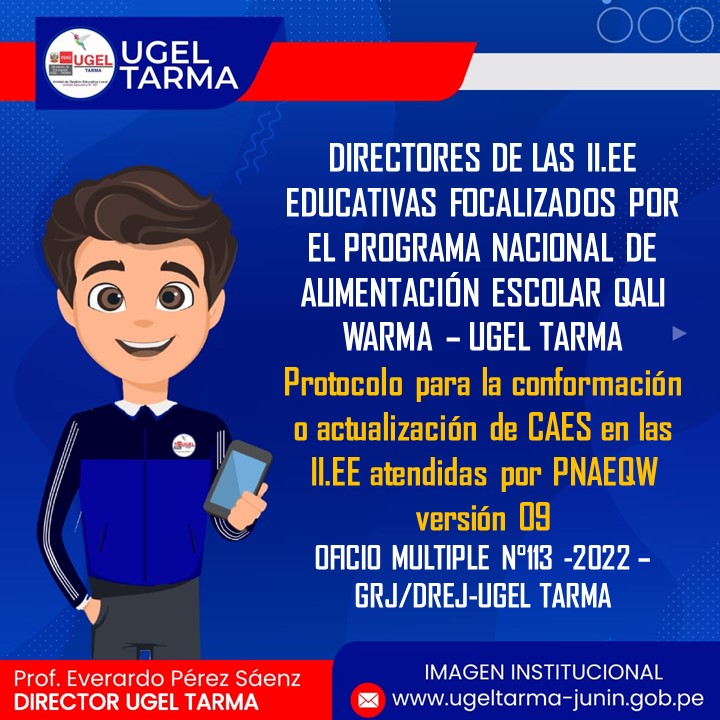 UGEL – TARMA Inicio Nosotros Historia Misión, Visión Directorio Telefónico Documento de Gestión Contacto Convocatorias Contratación CAS Contrato Docente 2022 Contrato de Auxiliares 2022 Reasignación Docente y Auxiliares Documentos de Gestión Directivas Oficios Comunicados Servicios Mesa de Partes Virtual (SISDORE) Consulta el estado de tu expediente Descargar FUT Libro de Reclamaciones Portal de Transparencia Protocolo para la conformación o actualización de CAES en las II.EE COMENTARIOS UNIDAD DE GESTIÓN EDUCATIVA LOCAL TARMA Dirección: Psj. San Juan Bosco N° 102 Tarma Central telefónica: (064) 323082 Mesa de Partes: (064) 321718 Email: ugel2020tarma@gmail.com Facebook Twitter Youtube