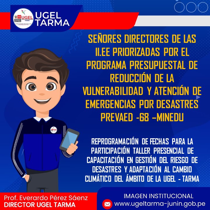 REPROGRAMACIÓN DE FECHAS PARA LA PARTICIPACIÓN TALLER PRESENCIAL DE CAPACITACIÓN EN GESTIÓN DEL RIESGO DE DESASTRES Y ADAPTACIÓN AL CAMBIO CLIMÁTICO DEL ÁMBITO DE LA UGEL – TARMA