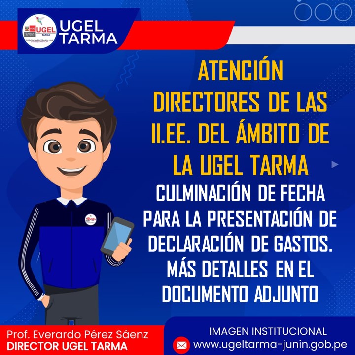 ATENCIÓN DIRECTORES DE LAS II.EE. DEL AMBITO DE LA UGEL TARMA, OFICIO DE CULMINACIÓN DE FECHA PARA LA PRESENTACIÓN DE DECLARACIÓN DE GASTOS