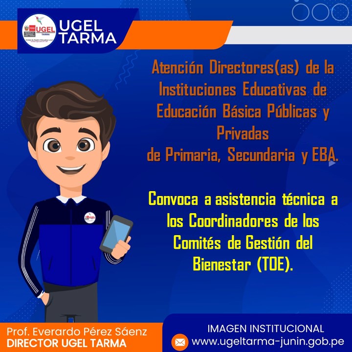 UGEL – TARMA Inicio Nosotros Historia Misión, Visión Directorio Telefónico Documento de Gestión Contacto Convocatorias Contratación CAS Contrato Docente 2022 Contrato de Auxiliares 2022 Reasignación Docente y Auxiliares Documentos de Gestión Directivas Oficios Comunicados Servicios Mesa de Partes Virtual (SISDORE) Consulta el estado de tu expediente Descargar FUT Libro de Reclamaciones Portal de Transparencia Convoca a asistencia técnica a los Coordinadores de los Comités de Gestión del Bienestar (TOE). COMENTARIOS UNIDAD DE GESTIÓN EDUCATIVA LOCAL TARMA Dirección: Psj. San Juan Bosco N° 102 Tarma Central telefónica: (064) 323082 Mesa de Partes: (064) 321718 Email: ugel2020tarma@gmail.com Facebook Twitter Youtube