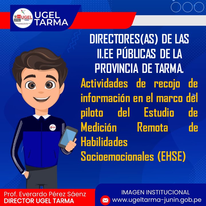 UGEL – TARMA Inicio Nosotros Historia Misión, Visión Directorio Telefónico Documento de Gestión Contacto Convocatorias Contratación CAS Contrato Docente 2022 Contrato de Auxiliares 2022 Reasignación Docente y Auxiliares Documentos de Gestión Directivas Oficios Comunicados Servicios Mesa de Partes Virtual (SISDORE) Consulta el estado de tu expediente Descargar FUT Libro de Reclamaciones Portal de Transparencia Actividades de recojo de información en el marco del piloto del Estudio de Medición Remota de Habilidades Socioemocionales (EHSE) COMENTARIOS UNIDAD DE GESTIÓN EDUCATIVA LOCAL TARMA Dirección: Psj. San Juan Bosco N° 102 Tarma Central telefónica: (064) 323082 Mesa de Partes: (064) 321718 Email: ugel2020tarma@gmail.com Facebook Twitter Youtube