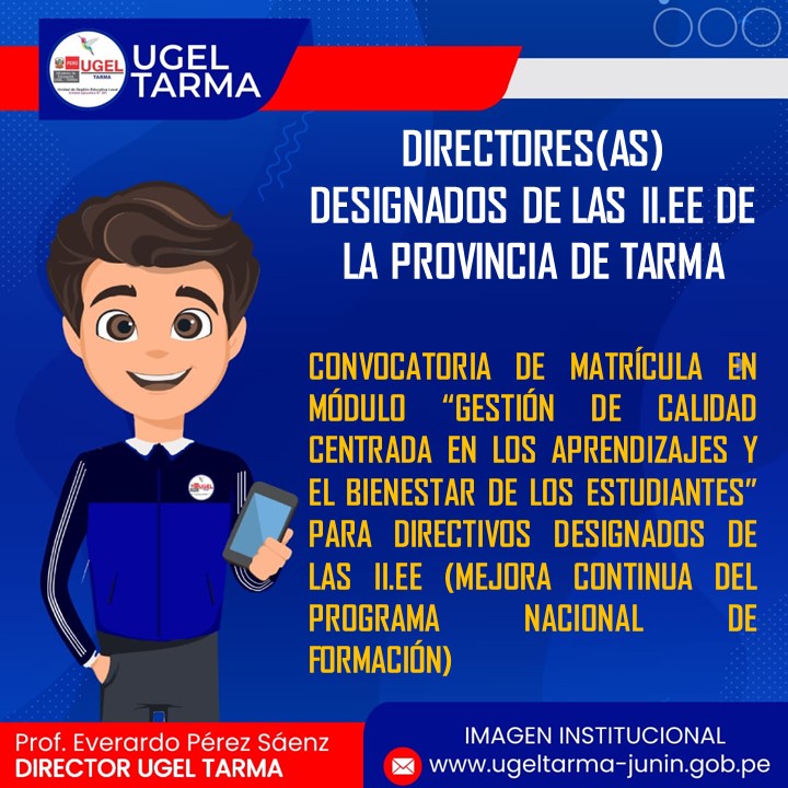 CONVOCATORIA DE MATRÍCULA EN MÓDULO “GESTIÓN DE CALIDAD CENTRADA EN LOS APRENDIZAJES Y EL BIENESTAR DE LOS ESTUDIANTES” PARA DIRECTIVOS DESIGNADOS DE LAS II.EE (MEJORA CONTINUA DEL PROGRAMA NACIONAL DE FORMACIÓN)