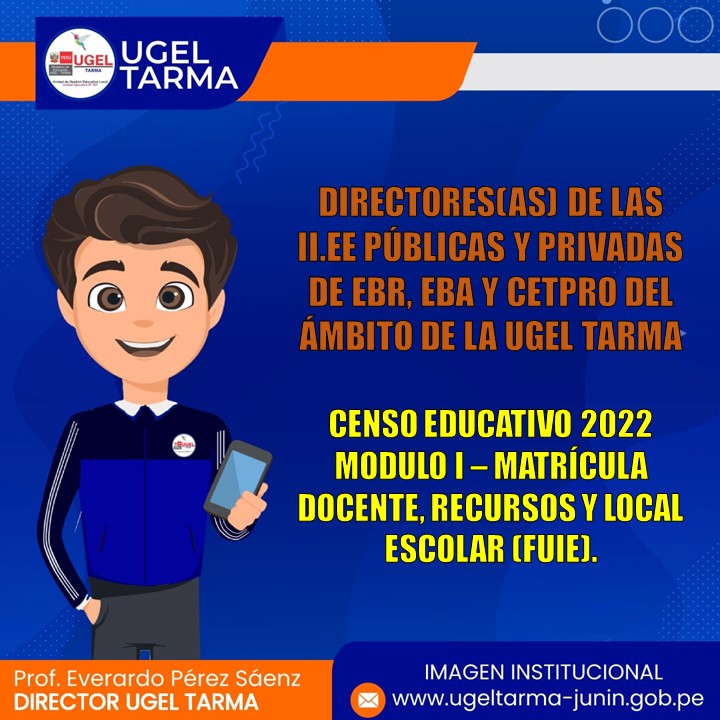 UGEL – TARMA Inicio Nosotros Historia Misión, Visión Directorio Telefónico Documento de Gestión Contacto Convocatorias Contratación CAS Contrato Docente 2022 Contrato de Auxiliares 2022 Reasignación Docente y Auxiliares Documentos de Gestión Directivas Oficios Comunicados Servicios Mesa de Partes Virtual (SISDORE) Consulta el estado de tu expediente Descargar FUT Libro de Reclamaciones Portal de Transparencia DISTRIBUCIÓN DE TABLETAS Y CARGADORES SOLARES COMENTARIOS UNIDAD DE GESTIÓN EDUCATIVA LOCAL TARMA Dirección: Psj. San Juan Bosco N° 102 Tarma Central telefónica: (064) 323082 Mesa de Partes: (064) 321718 Email: ugel2020tarma@gmail.com Facebook Twitter Youtube