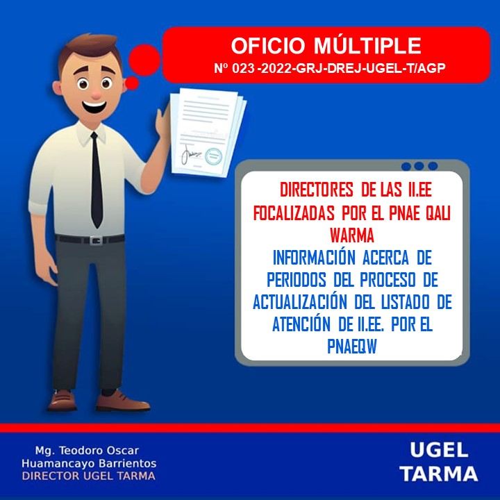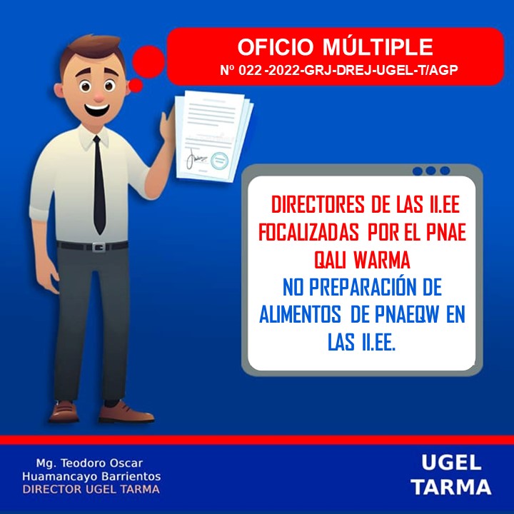 ATENCIÓN DIRECTORES DE LAS II.EE FOCALIZADAS USUARIAS POR EL PNAE QALI WARMA 2022 – UGEL TARMA