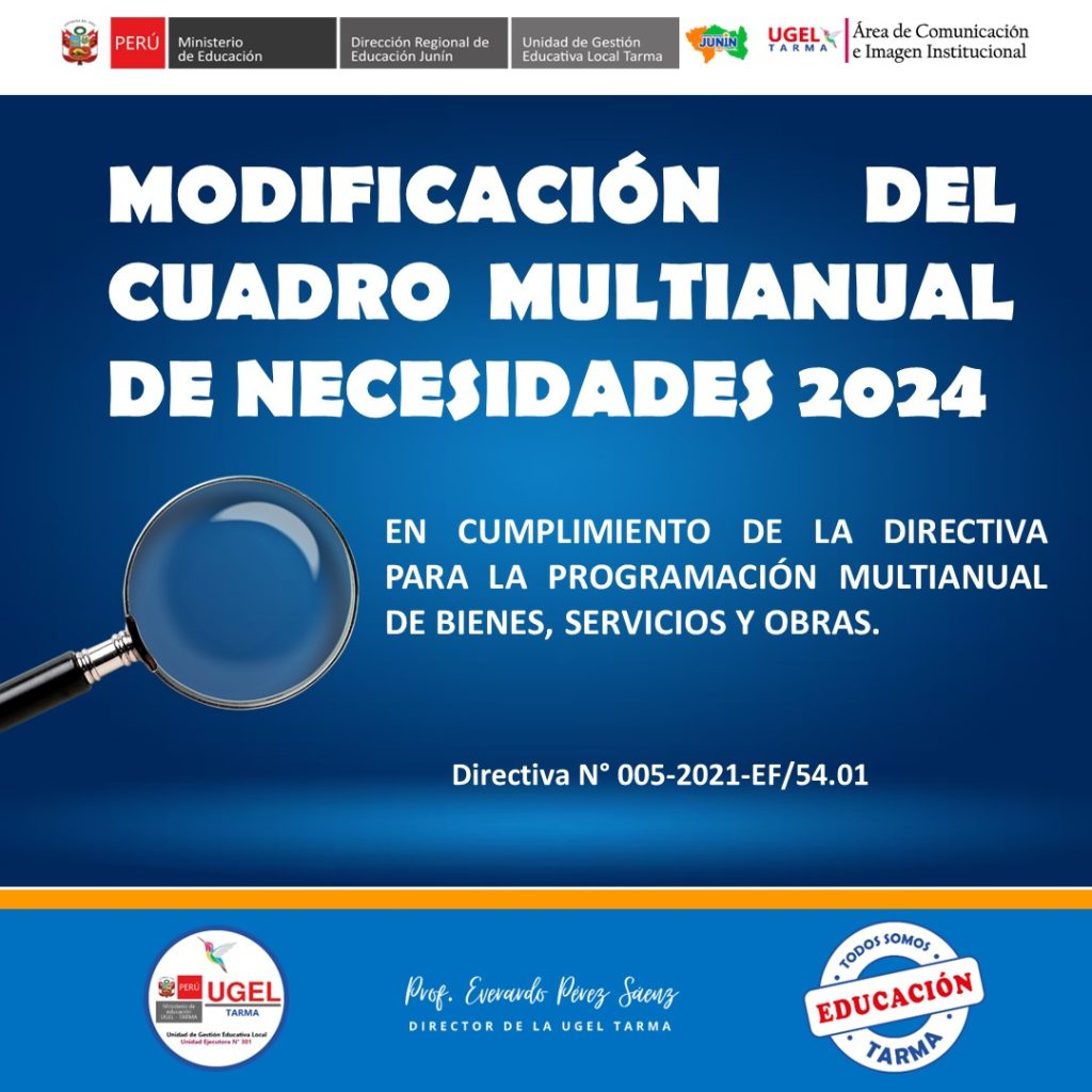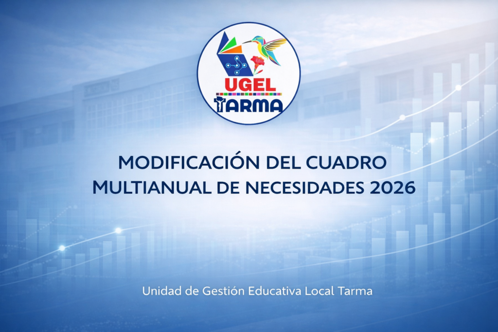 UGEL – TARMA Menu Inicio Nosotros Historia Misión, Visión Directorio Telefónico Documento de Gestión Contacto Convocatorias PROCESO DE ENCARGATURA 2026 CONVOCATORIA PERSONAL CAS 2025 CONTRATACIÓN DE AUXILIARES 2025 Documentos de Gestión Directivas Oficios Comunicados Servicios Mesa de Partes Virtual (SISDORE) Consulta el estado de tu expediente Descargar FUT Libro de Reclamaciones Portal de Transparencia TARMA EDU MODIFICACION DEL CUADRO MULTIANUAL DE NECESIDADES 2025