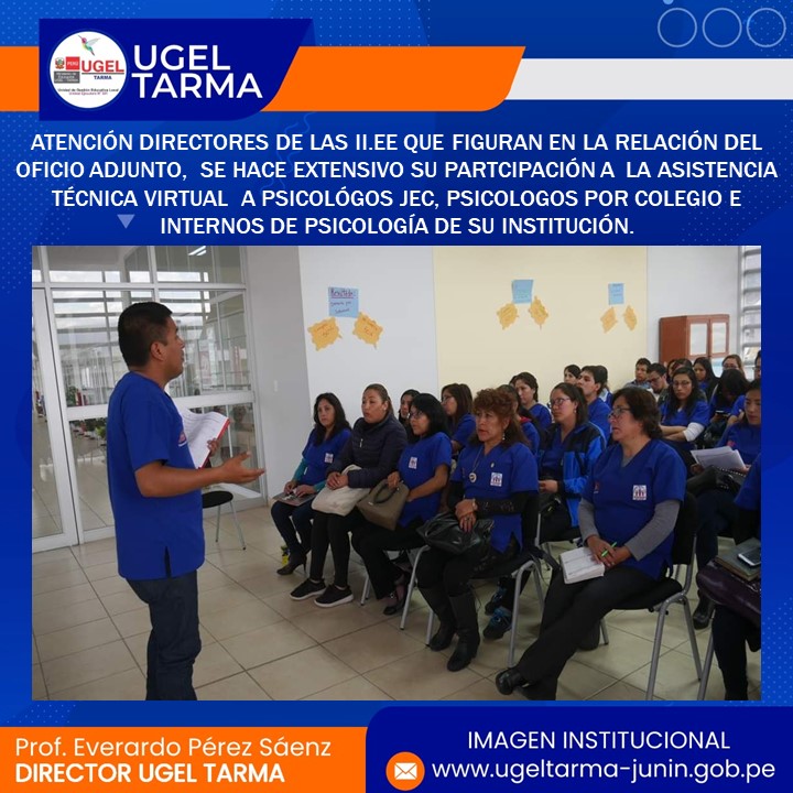 ASISTENCIA TÉCNICA VIRTUAL A PSICOLÓGOS JEC, PSICOLOGOS POR COLEGIO E INTERNOS DE PSICOLOGÍA DE SU INSTITUCIÓN.