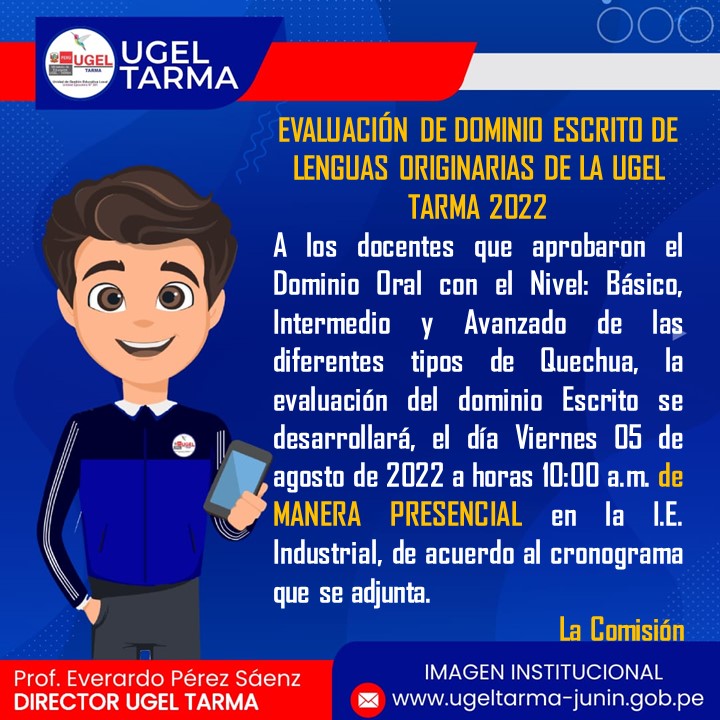 COMUNICADO EVALUACIÓN DE DOMINIO ESCRITO DE LENGUAS ORIGINARIAS DE LA UGEL TARMA 2022