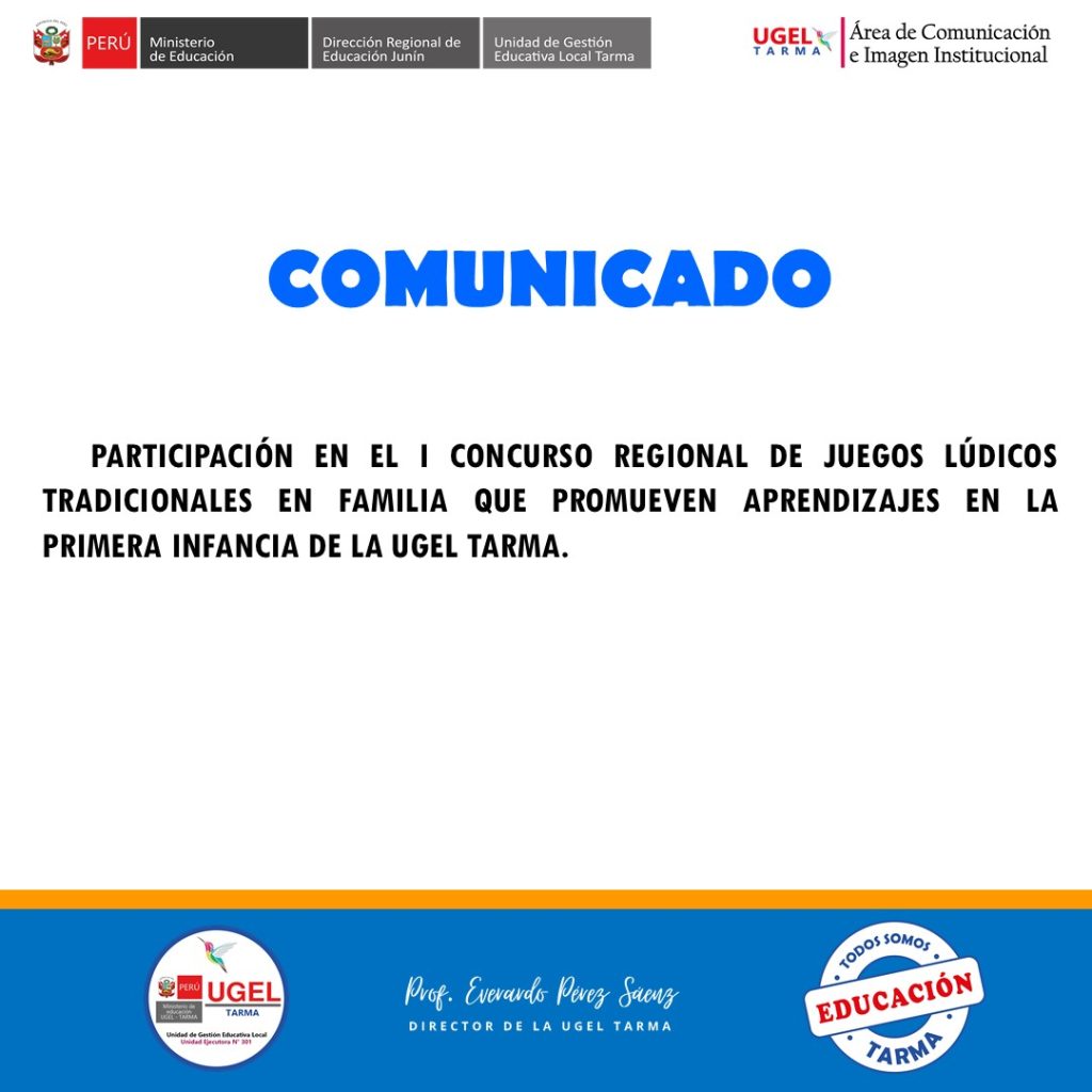 PARTICIPACIÓN EN EL I CONCURSO REGIONAL DE JUEGOS LÚDICOS TRADICIONALES EN FAMILIA QUE PROMUEVEN APRENDIZAJES EN LA PRIMERA INFANCIA DE LA UGEL TARMA