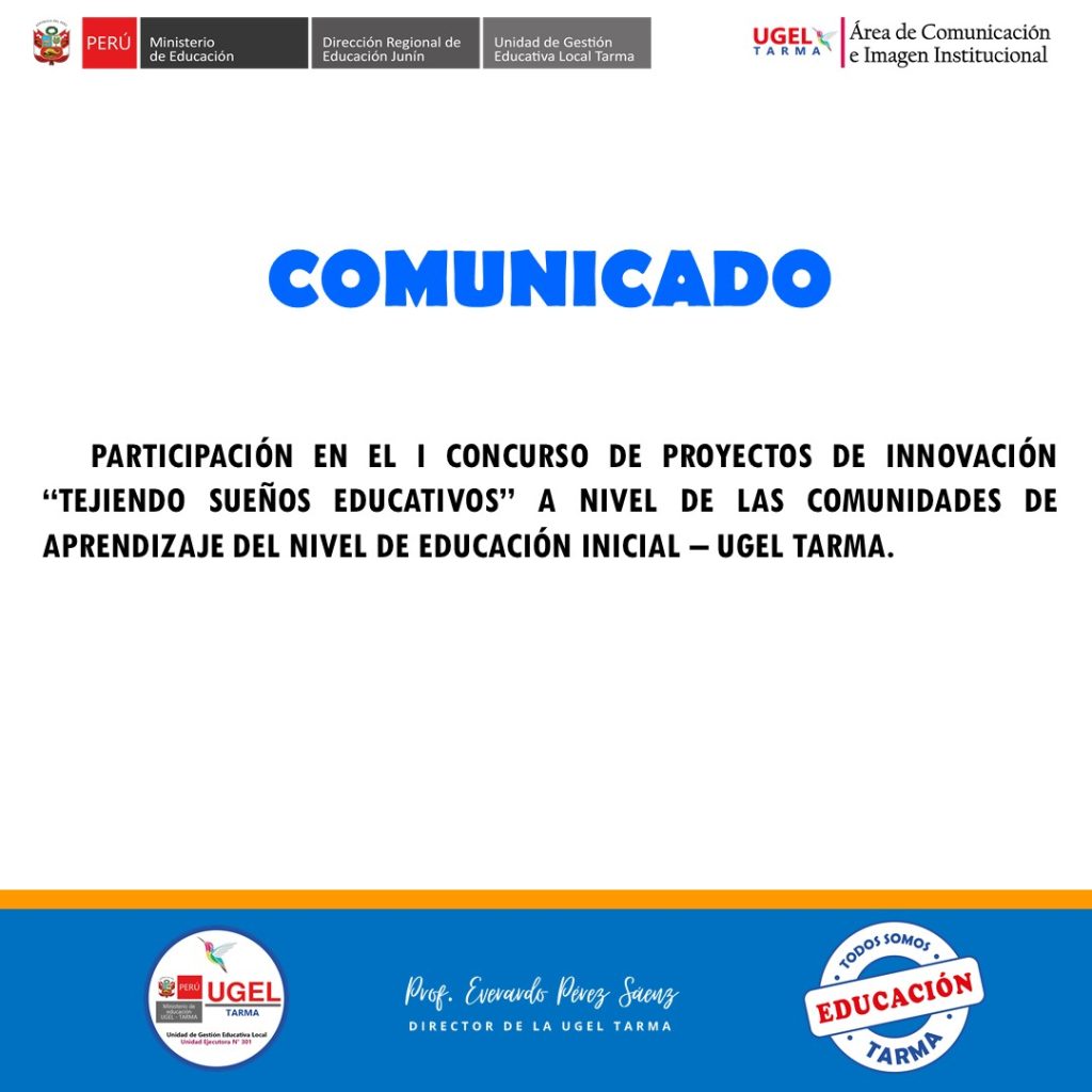 PARTICIPACIÓN EN EL I CONCURSO DE PROYECTOS DE INNOVACIÓN “TEJIENDO SUEÑOS EDUCATIVOS” A NIVEL DE LAS COMUNIDADES DE APRENDIZAJE DEL NIVEL DE EDUCACIÓN INICIAL – UGEL TARMA