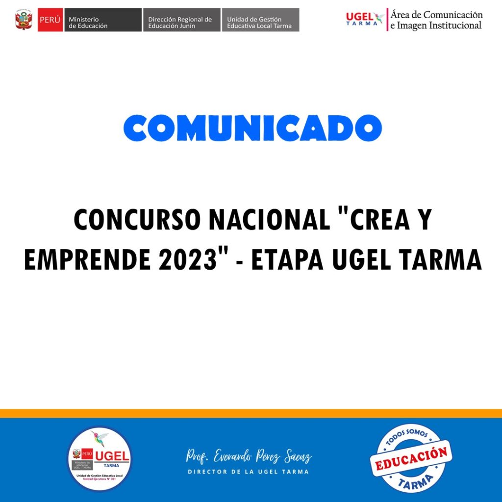 CONCURSO NACIONAL «CREA Y EMPRENDE 2023» – ETAPA UGEL TARMA