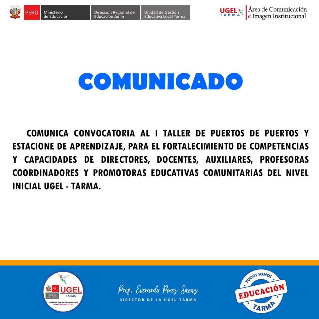 COMUNICA CONVOCATORIA AL I TALLER DE PUERTOS DE PUERTOS Y ESTACIONE DE APRENDIZAJE